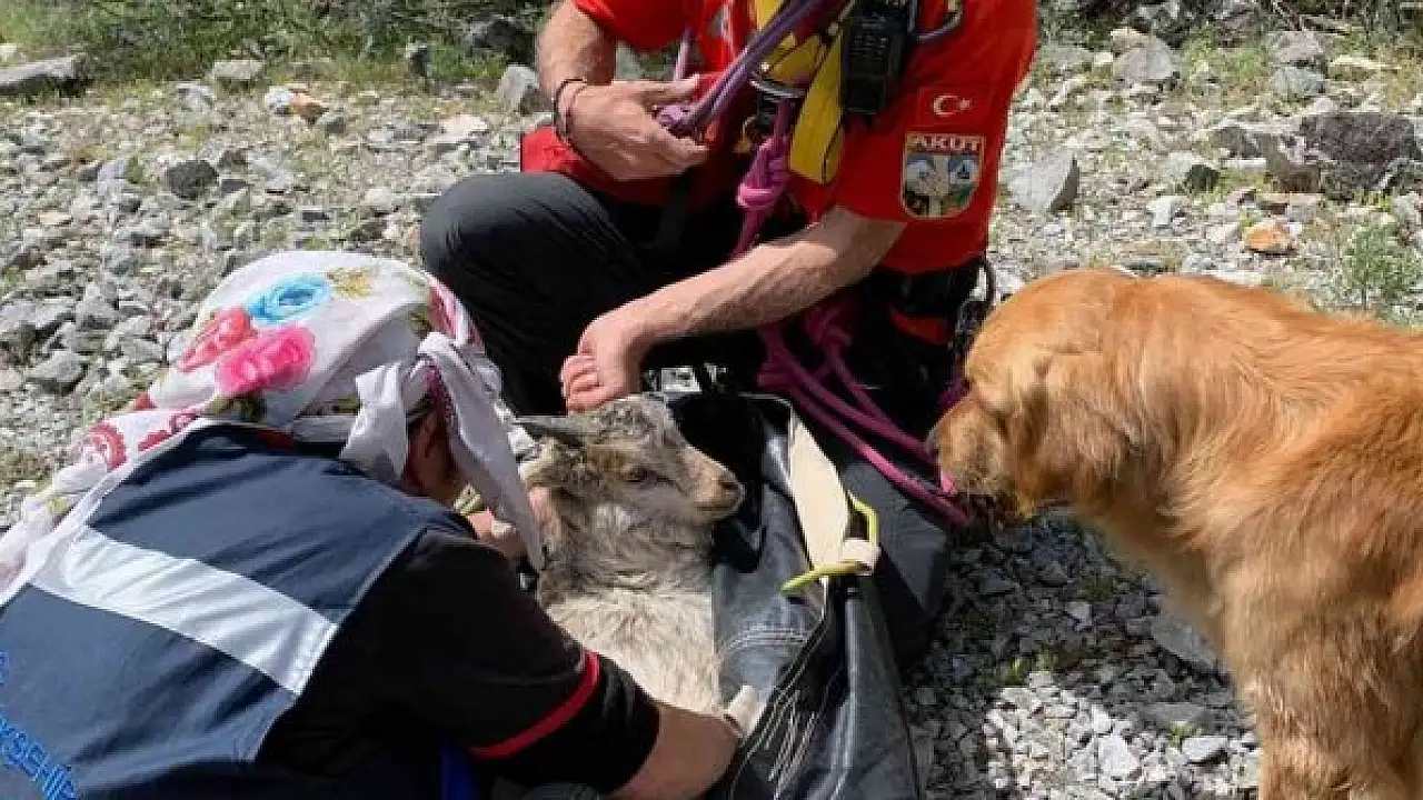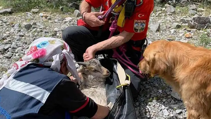 Muğla'nın Ula ilçesi kırsal Karabörtlen Mahallesindeki sarp arazide mahsur kalan keçi ile yavrusu Marmaris AKUT ekibinin müdahalesi ile kurtarıldı.