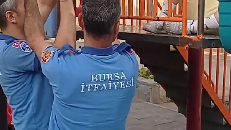 Bursa'nın İnegöl ilçesinde kaydırak korumalıklarına bacağı sıkışan çocuk itfaiye ekiplerince kurtarıldı.