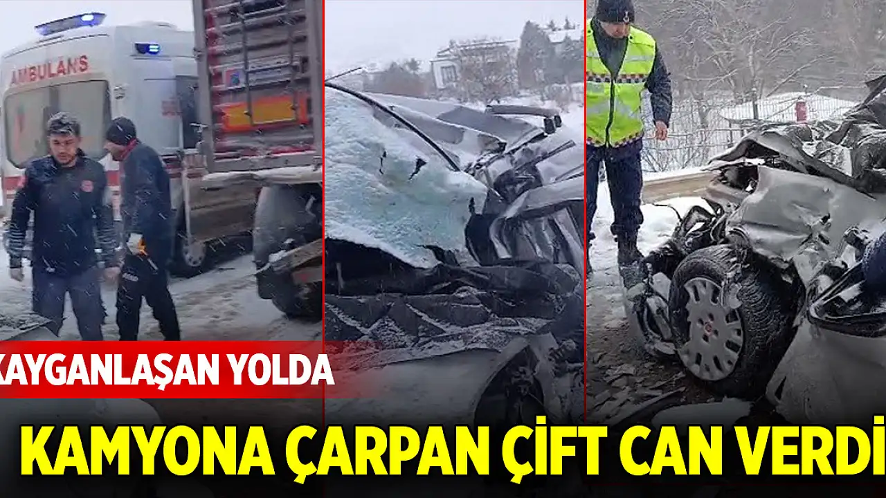 Kayganlaşan yolda kamyona çarpan çift can verdi