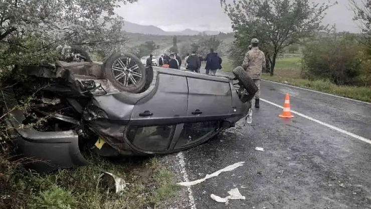 Kayganlaşan yolda kontrolden çıkan otomobil takla attı: 4 yaralı