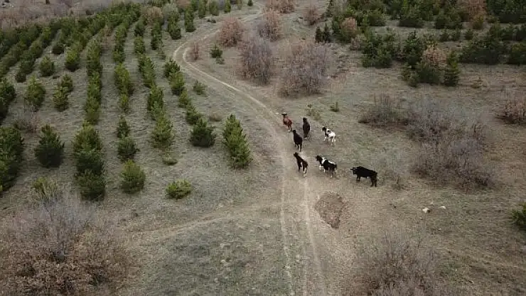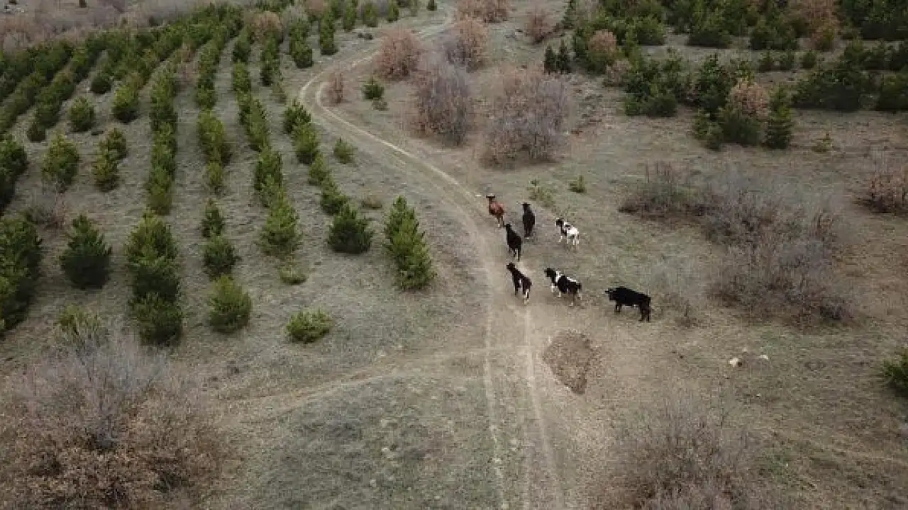ESKİŞEHİR'in Odunpazarı ilçesindeki kırsal mahallede H.B. (84) adlı kadının otlatmaya çıkardığı ve bir süre sonra kaybolan 7 büyükbaş hayvanı, jandarma ekiplerince dronla yaklaşık 4 kilometre uzaklıkta bulundu.