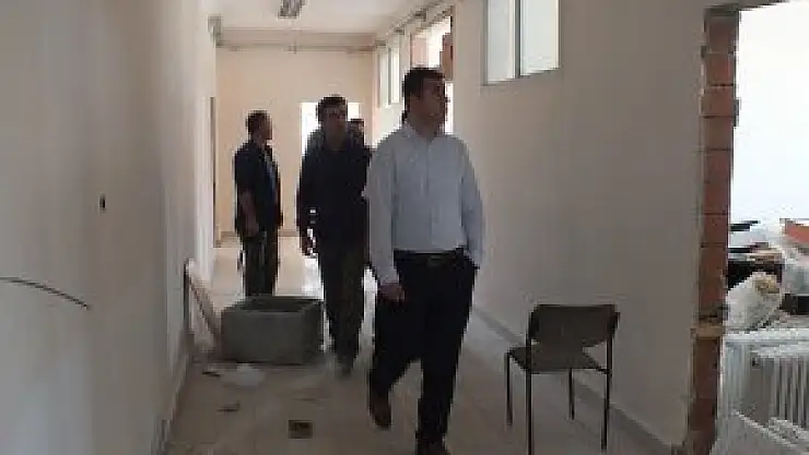 Sivas'ın Ulaş İlçe Kaymakamı Orhan Altun, onarımı devam eden okullarda incelemelerde bulundu.