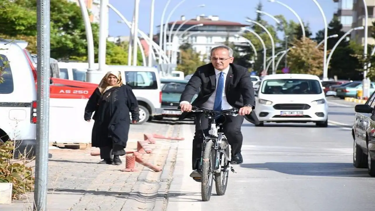 Konya Haberi... Seydişehir Kaymakamı Deniz Pişkin, sabah işe giderken makam aracı yerine bisikleti tercih etti.