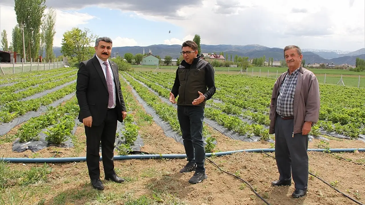 Yazıcı, proje kapsamında ilçede sera mantarı üretimi yapan Cevriye Civci ile Ramazan Güney'in çilek bahçesinde incelemede bulundu.