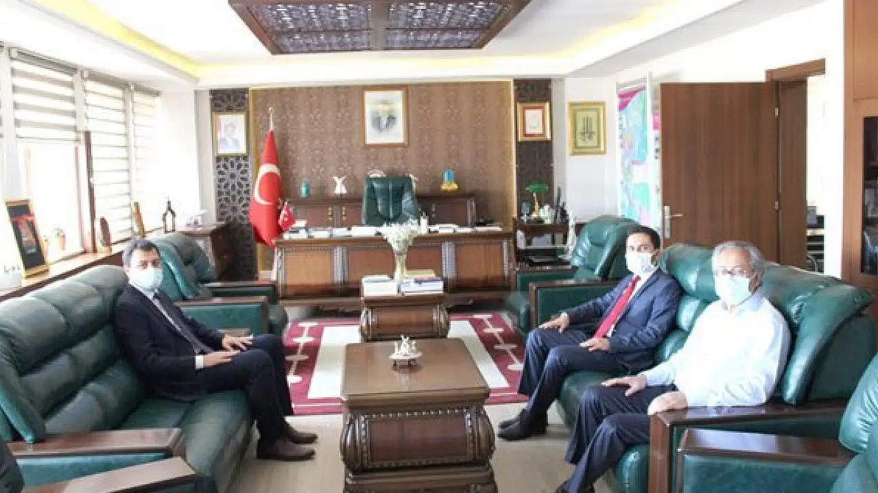 Güneysınır Kaymakamı Ertuğrul Bayram ve Halkapınar Kaymakamı İsmail Bildirici, Karatay Kaymakamı A. Selim Parlar'ı makamında ziyaret ettiler.