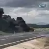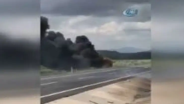 Kayseri-Sivas karayolunda bir yolcu otobüsü alev alev yandı.