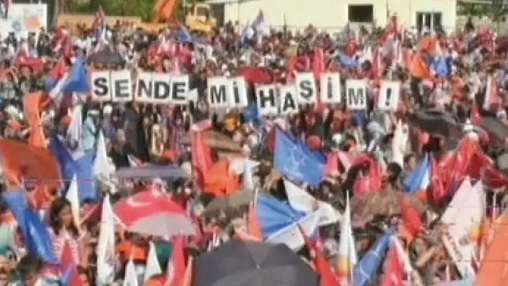 Başbakan Recep Tayyip Erdoğan Kayseri'de düzenlenen toplu açılış töreninde konuştu. Erdoğan konuştuğu sırada AK Partililer'in harflerden oluşan 'Sen de mi Haşim' yazısını göstermeleri dikkat çekti.