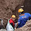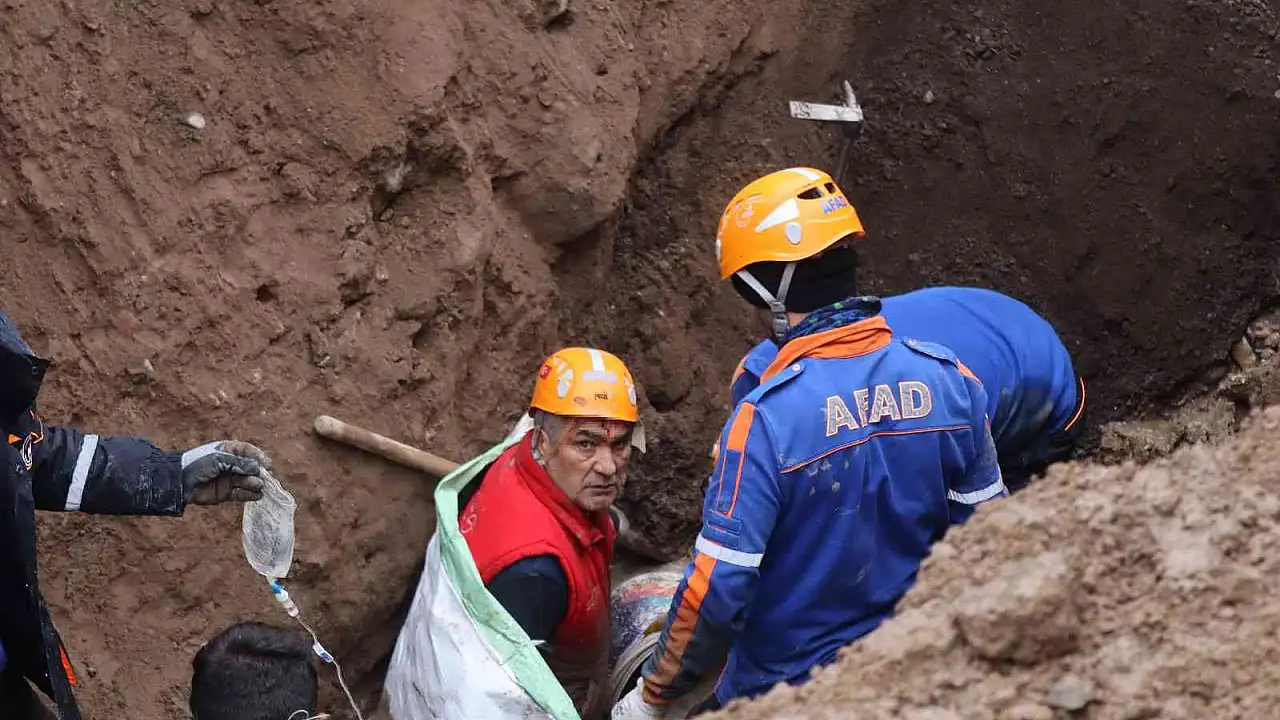 Ekiplerin yaklaşık 5 metrelik çukurda mahsur kalan işçiyi kurtarmak için başlattığı çalışma sürüyor.