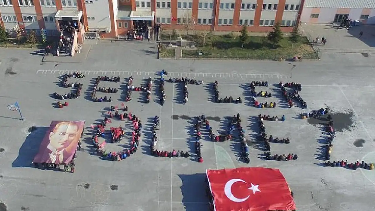 Kayseri'nin Kocasinan ilçesi Sahabiye Mahallesi'nde bulunan Refika Küçükçalık Ortaokulu öğrencileri, 14 askerin şehit olduğu, 55 kişinin yaralandığı terör saldırısını protesto etmek için özel bir koreografi hazırladı.