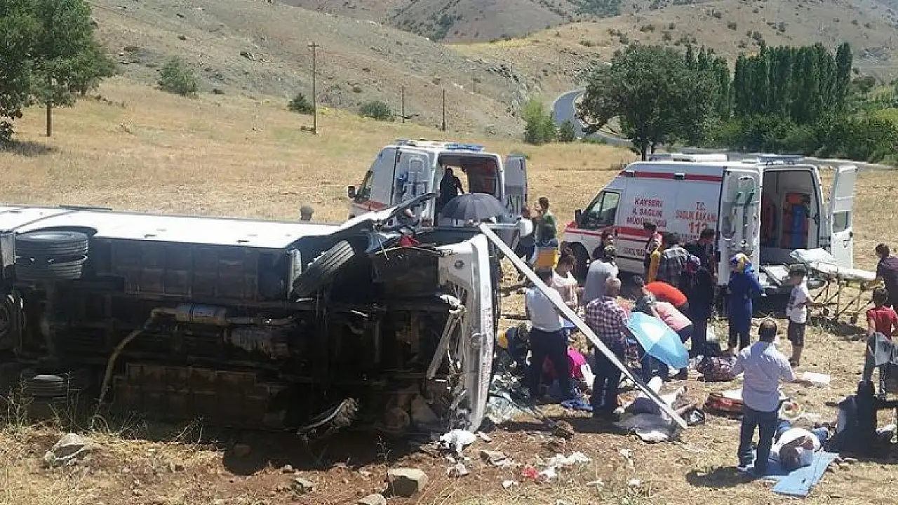 Kayseri'nin Yahyalı ilçesinde tur midibüsünün devrilmesi sonucu ilk belirlemelere göre 26 kişi yaralandı.