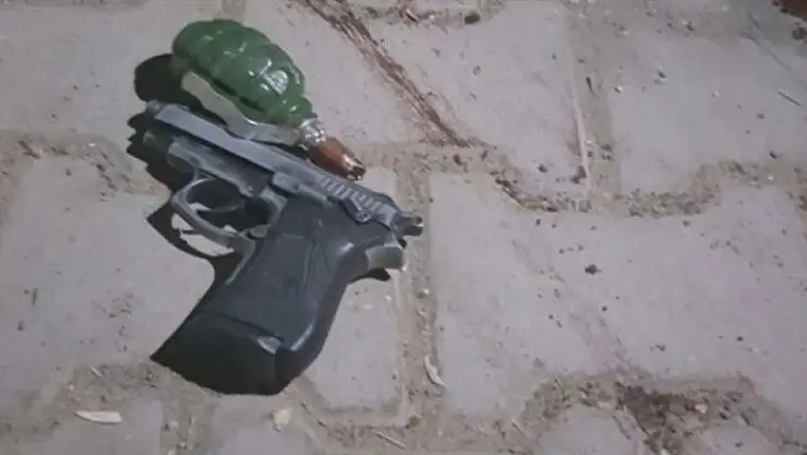 Terörist ile birlikte susturuculu silah ve el bombası ele geçirildi.