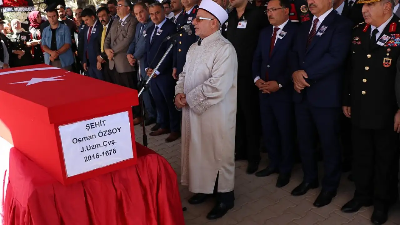 Şehit Jandarma Uzman Çavuş Osman Özsoy'un cenazesi, kılınan namazın ardından mahalle mezarlığında toprağa verildi.