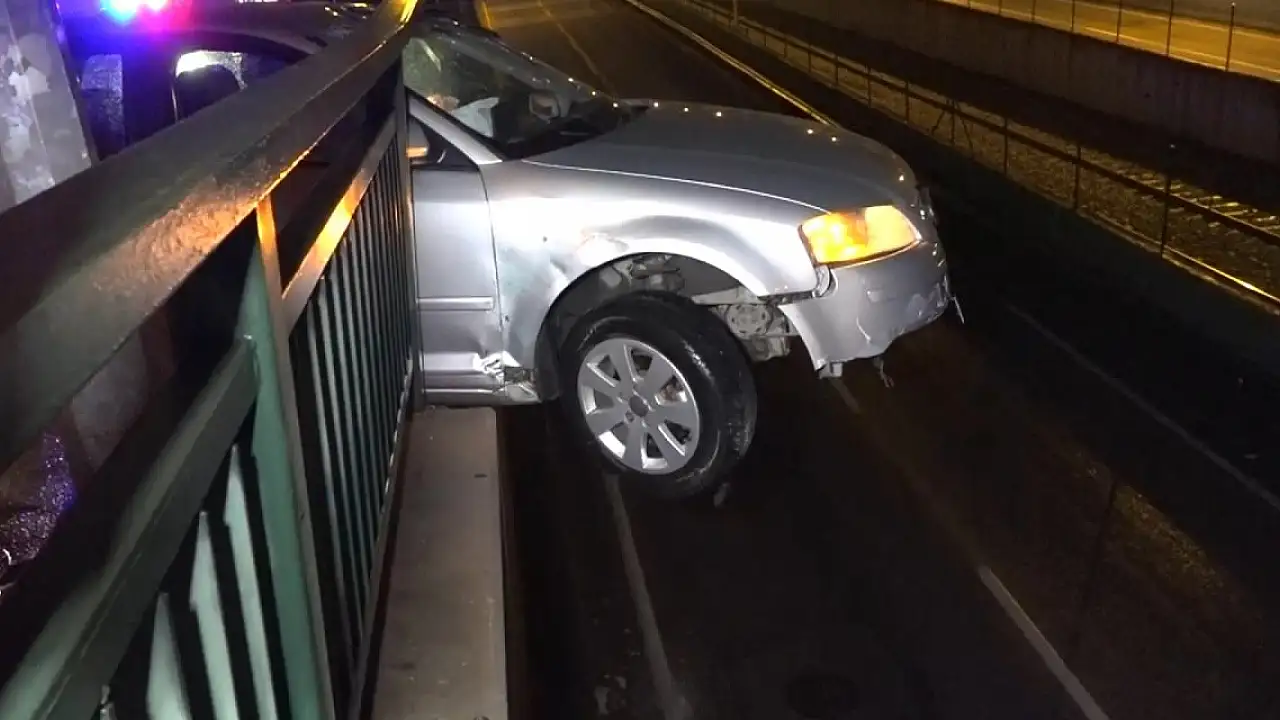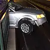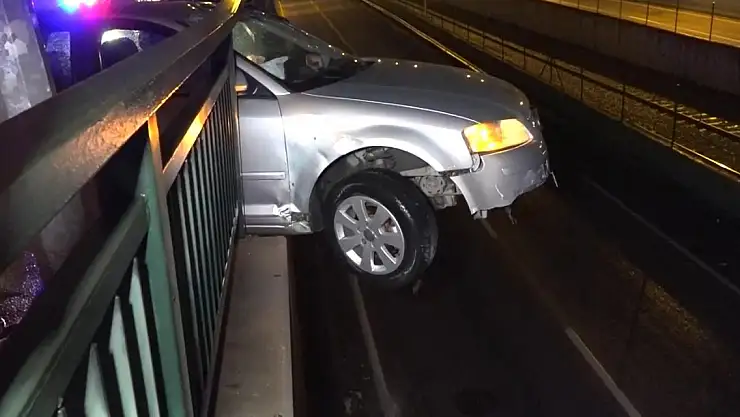 Kaza sonrası sürücüsünün kaçtığı otomobil, alt geçitte asılı kaldı