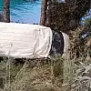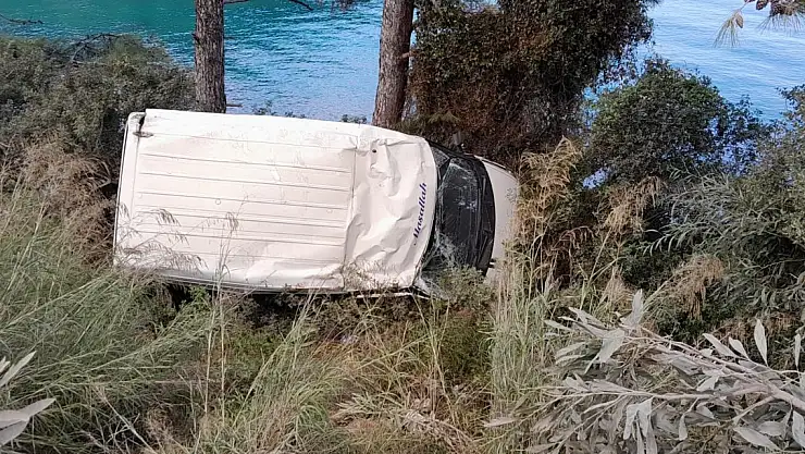 Kaza yapan minibüsteki 7 kişiyi denize düşmekten çam ağacı kurtardı