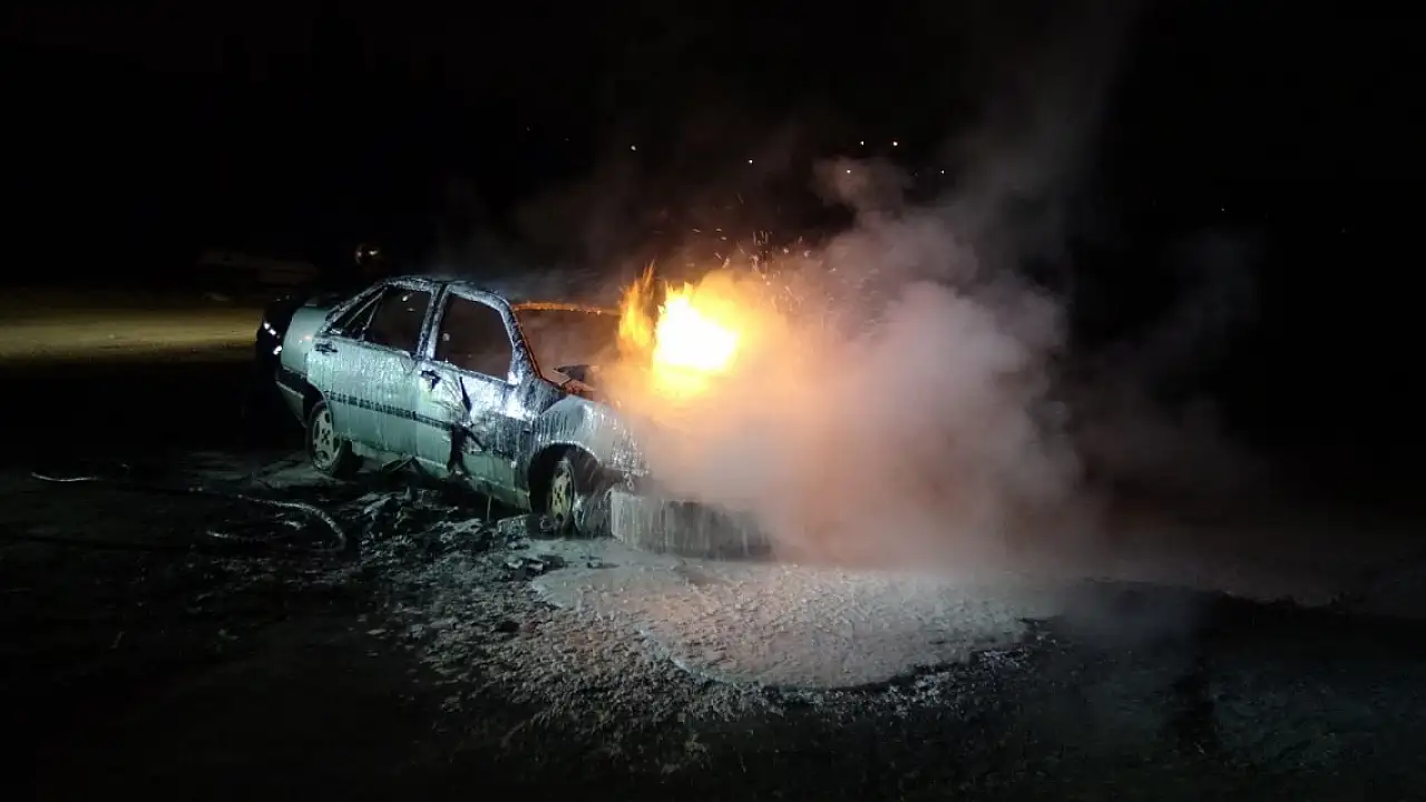 Kaza yapan otomobil alev alev yandı