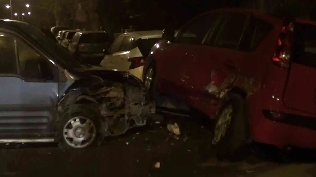 Kaza yapan otomobil park halindeki araçlara çarptı