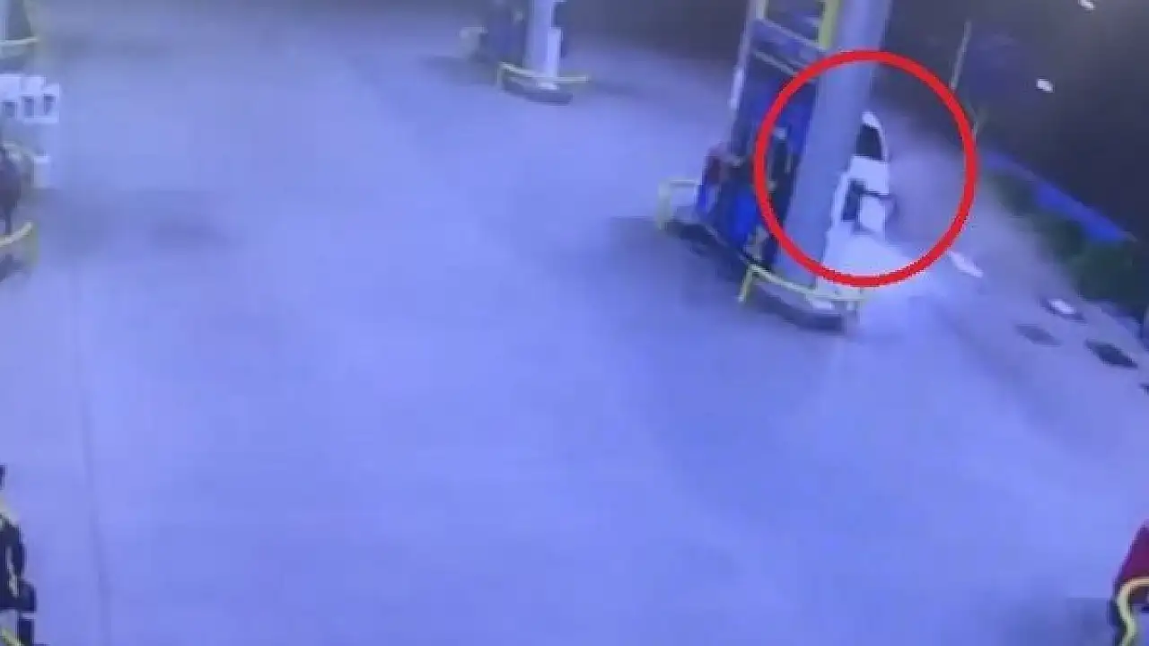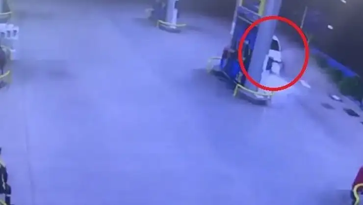 Olay merkez Yıldırım ilçesi Arabayatağı mahallesi Ankara Yolu caddesindeki bir benzinlikte meydana geldi. İddiaya göre aynı şeritte seyreden otomobilin manevrasıyla yoldan çıkan diğer sürücü otomobile çarpmamak için direksiyonu benzinliğe çevirince kaza kaçınılmaz oldu. İstasyonun girişinde bulunan tabelaya çarparak duran otomobil sürücüsü kazayı yara almadan atlatırken facia teğet geçti. Kaza esnasında istasyonda görevli pompacılar şaşkınlık yaşadı. Kaza anı ise istasyonun güvenlik kamerasına saniye saniye yansıdı.