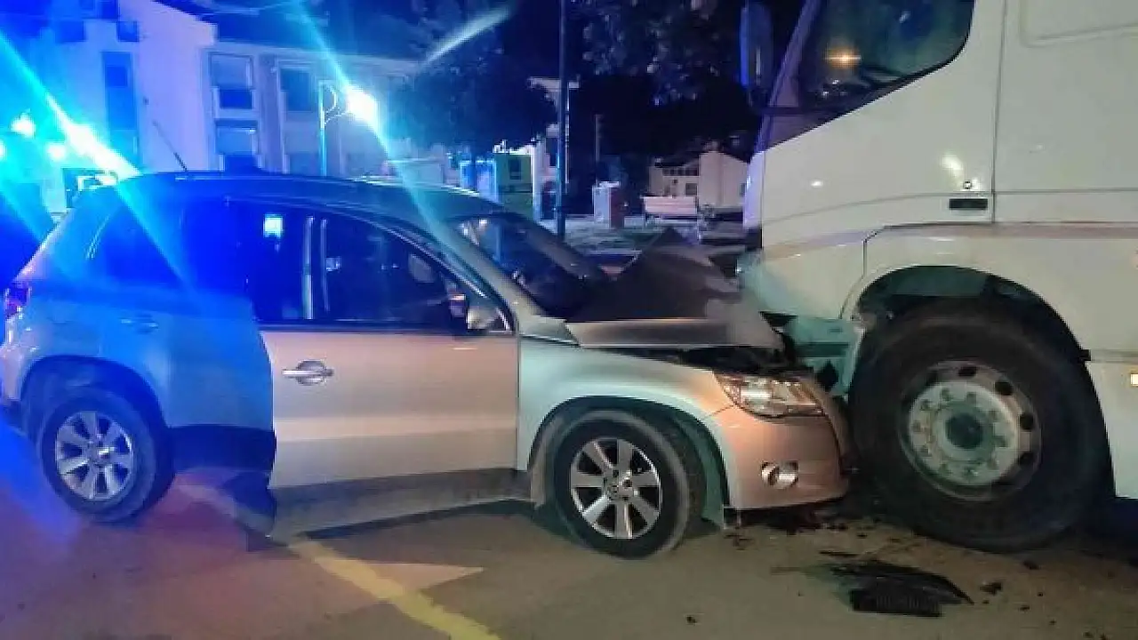 Aydın'ın Kuşadası ilçesinde direksiyon hakimiyetini kaybeden sürücü park halindeki tıra çarptı.