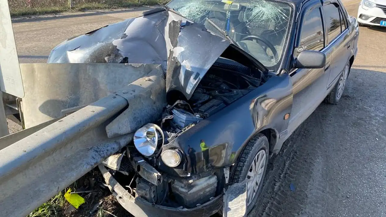 Düzce'de TEM Otoyolu'na bağlanan yola son anda girmek isteyen sürücünün kontrolünü kaybettiği otomobil, bariyerlere çarptı. Bariyerlerin ok gibi saplandığı otomobilde yaralanan sürücü ile eşi tedaviye alındı.