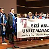 ERZURUM'da mezuniyet yemeği için restoranlarla görüşmeye giderken geçirdikleri trafik kazasında yaşamını yitiren Zeynep Bağrıyanık (22) ile Nezahat Tanas (24), eğitim gördükleri Atatürk Üniversitesi Edebiyat Fakültesi Sosyoloji Bölümü'nün diploma töreninde unutulmadı. Öğrenciler törende üzerlerinde Bağrıyanık ve Tanas'ın fotoğraflarıyla 'Sizi Asla Unutmayacağız' yazılı pankart açtı.