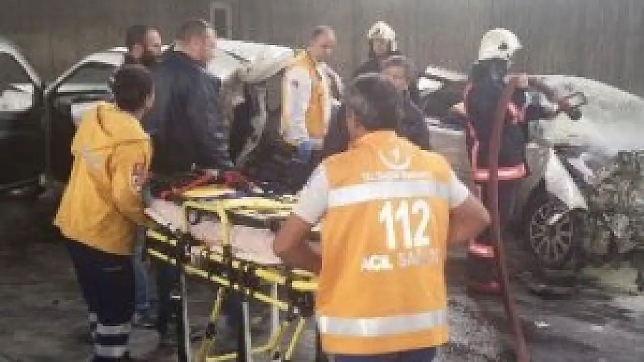 Ankara'da seyir halinde otomobile arkadan çarparak alev alan araçtaki vatandaşlar son anda kurtarıldı. Kazada 3 kişi yaralandı.