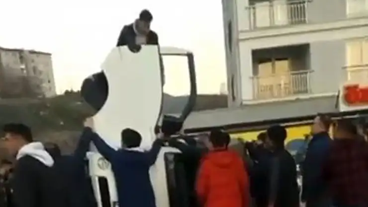 Kaza, Kestel ilçesi Yeni Mahalle'de meydana geldi. Edinilen bilgiye göre, 16 MA 8457 plakalı kamyonet, sürücüsünün kontrolünden çıkarak yan yattı. Çevredeki vatandaşlar hemen sürücünün yardımına koşarak, şahsı araçtan çıkardı. Sürücü kazayı hafif sıyrıklarla atlatırken, o anlar cep telefonu kamerasına yansıdı.