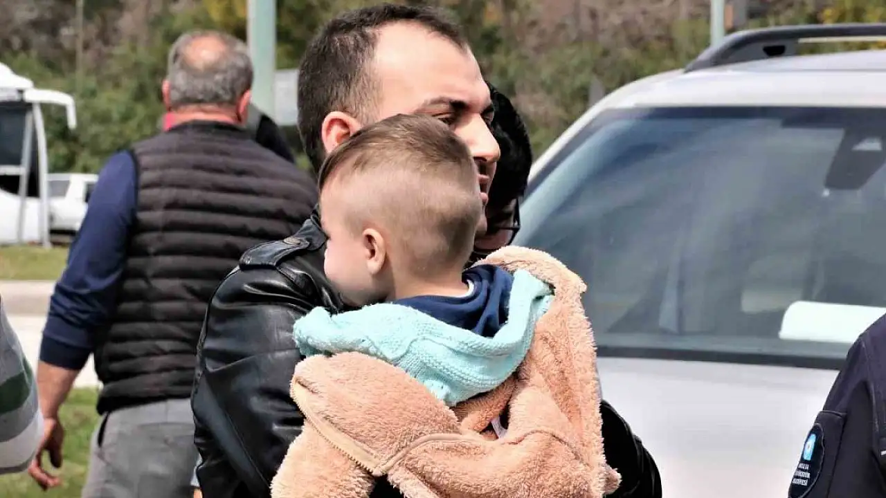 Baba ağlayan çocuğunu bir an olsun bırakmadı