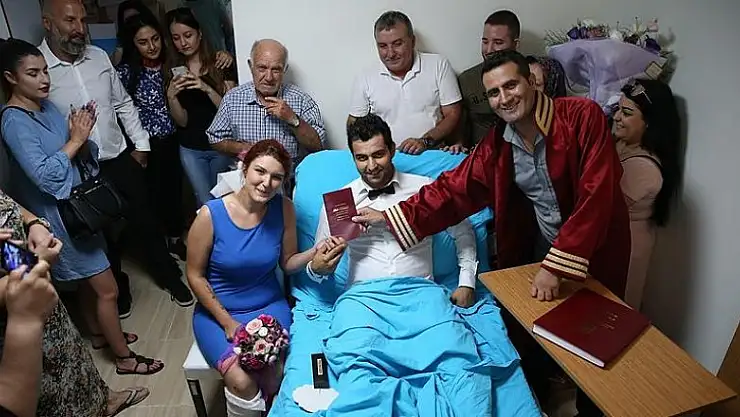 Bunun üzerine yakınlarını hastane odasına davet eden çiftin nikahı burada kıyıldı. Nikah cüzdanını geline veren memur, genç çifte ömür boyu mutluluk diledi.