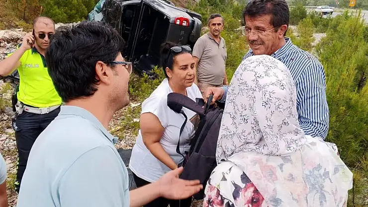 Kaza, dün akşam saatlerinde Gölcük Mahallesi'nde meydana geldi. Muğla'dan Denizli yönüne gitmekte olan eski Ekonomi Bakanı Nihat Zeybekci yönetimindeki 20 AGZ 623 plakalı kamyonet, yağmur nedeniyle kayganlaşan yolda kontrolden çıkıp, şarampole devrildi. İhbarla bölgeye sağlık ve jandarma ekipleri sevk edildi. Kamyonetten kendi imkanları ile çıkan Zeybekci ile yakını İbrahim Ünlü, sağlık ekiplerince Muğla Eğitim ve Araştırma Hastanesi'ne kaldırıldı. Kazanın ardından Muğla Valisi Orhan Tavlı ile AK Parti Muğla Milletvekili Kadem Mete, hastaneye gidip, Zeybekci'nin sağlık durumu hakkında Başhekim Doç. Dr. Turhan Togan'dan bilgi aldı. Zeybekci ile Ünlü, bu sabah tedavilerinin ardından taburcu edildi.