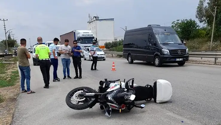 Antalya'nın Serik ilçesinde polis motosikleti ile otomobilin karıştığı kazada 1 polis yaralandı. Kaza sonrası polisin yardımına koşan vatandaşlardan biri elini tutarak destek olmaya çalıştı. Polis memurunun durumunun iyi olduğu bildirildi.