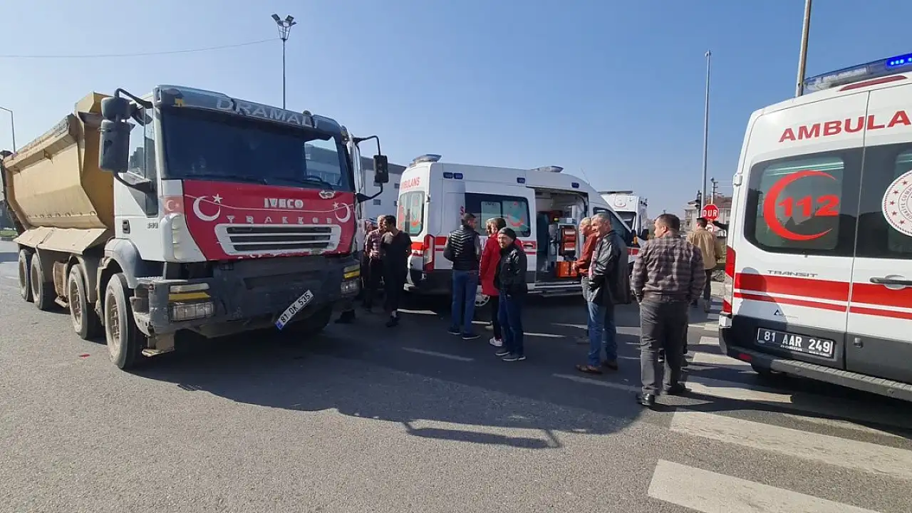 AMBULANSA YOL VERMEK İÇİN DURDU, KAMYON ÇARPTI