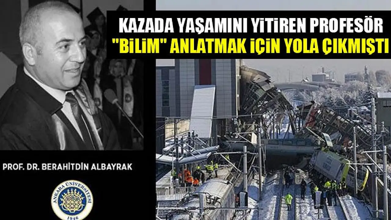 Ankara'da, Yüksek Hızlı Tren (YHT) ile yol kontrolü yapan kılavuz trenin çarpışması sonucu meydana gelen kazada yaşamını yitiren, Ankara Üniversitesi eski rektör yardımcılarından Fen Fakültesi Astronomi ve Uzay Bilimleri Bölümü Öğretim Üyesi Prof. Dr. Berahitdin Albayrak'ın, bilimsel bir etkinliğe konuşmacı olarak katılmak üzere Konya'ya gelmek üzere trene bindiği belirlendi.