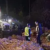 Malatya'da talaş yüklü TIR, sürücüsünün direksiyon hakimiyetini yitirmesi sonucu devrildi.