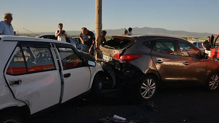 Manisa'nın Turgutlu ilçesinde, önünde meydana gelen kaza için duran araca başka bir otomobilin çarpması sonucu 9 kişi yaralandı.