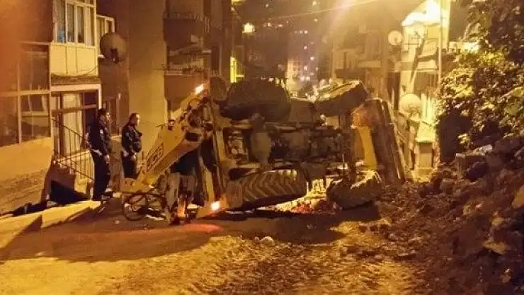 Zonguldak Site Mahallesi'nde Müftülük Yokuşu olarak bilinen bölgede doğalgaz çalışmaları yapmakta olan bir iş makinesi çalışma yapılan bölgenin engebeli olması sebebiyle devrildi. Kazada iş makinesi sürücüsü burnu bile kanamadan kurtuldu.