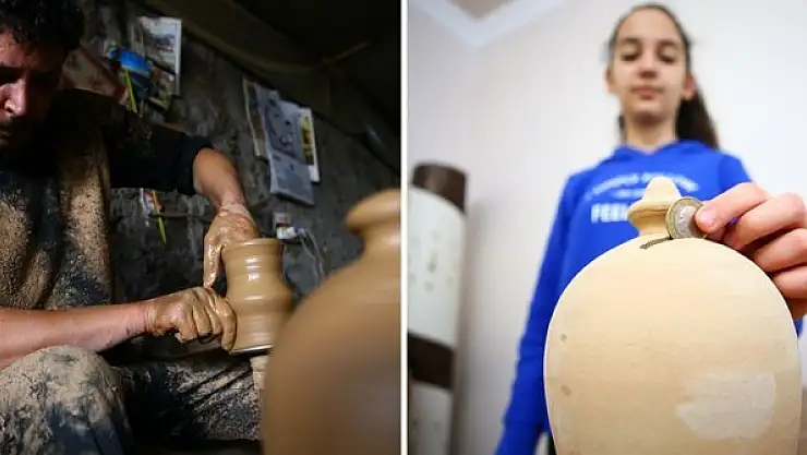 Atölyesinde geleneksel yöntemle üretim yapan Yorgun, kebap testisi yerine çocuklar için kumbara hazırlamaya başladı.