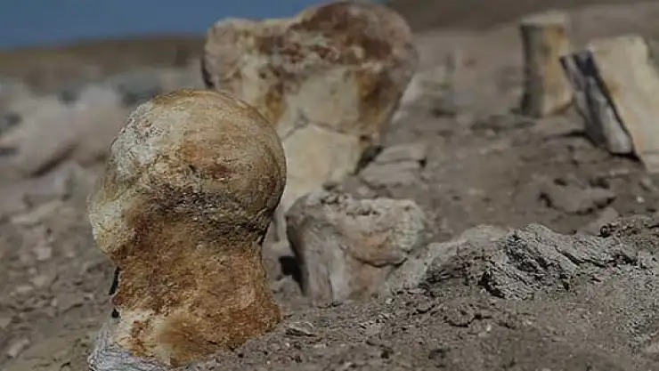 Kayseri'de keçi otlatan bir çobanın ihbarıyla fil veya mamuta ait olduğu değerlendirilen milyon yıllık fosil bulundu.