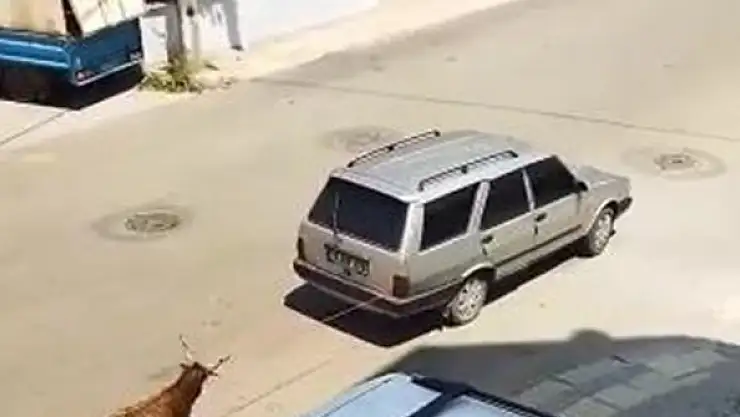 Keçiyi, aracının arkasına bağlayıp götürdü