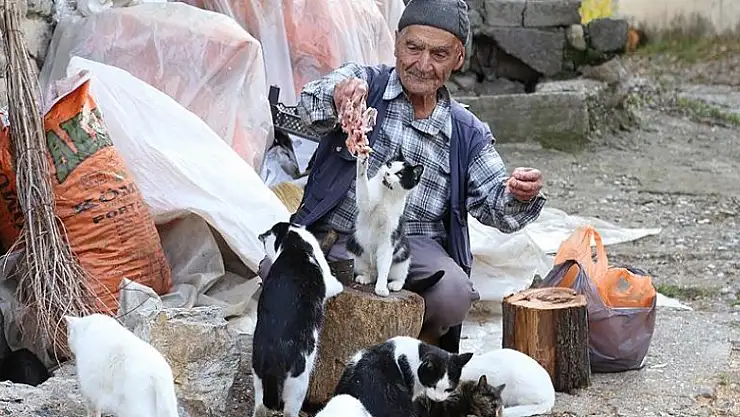 Erzurum'un İspir ilçesinde 78 yaşındaki emekli Ali Sayın, 21 yıldır nehirden tuttuğu balıklar ve kasaptan aldığı etlerle aralarında sokaktakilerin de bulunduğu kedileri besliyor.