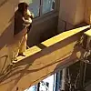 Güngören'de üst kat balkonunun duvarında ipe dolanarak asılı kalan kediyi alt katta oturan kadın canını tehlikeye atarak kurtardı. Kadın kendi evinin balkon kenarına çıkıp kediyi kurtarmaya çalışırken mahalle sakinleri battaniye açıp güvenlik önlemi aldı.