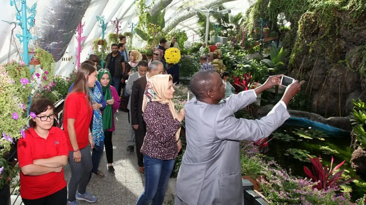 Yönetim kurulu toplantısı için Ankara’da bulunan İslam İşbirliği Teşkilatı alt organı, İslam Ülkeleri İstatistik, Ekonomik ve Sosyal Araştırma ve Eğitim Merkezi (SESRIC) Konya’yı daha iyi tanımak ve ülke tanıtımına katkı sağlamak amacıyla bir ziyaret gerçekleştirdi. Program kapsamında Alaaddin Tepesi, Panoramik Konya Turu, Mevlana Müzesi ve Şems-i Tebrizi türbesini ziyaret eden heyetin son durağı Konya Tropikal Kelebek Bahçesi oldu. Farklı ülkelerden 14 temsilcinin olduğu heyet, kelebekler ve tropik bitkiler arasında keyifli vakit geçirirken ziyareti ölümsüzleştirmek için bol bol hatıra fotoğrafı çektiler.