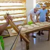 Sakarya'da çalışanlarının tamamının Trabzonlu olduğu bir fırında işçiler kemençe eşliğinde eğlenerekpide ve ekmek yapıyor.