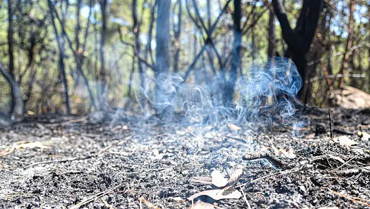 Beydağları Sahil Milli Parkı'ndaki ormanda yangının çıkış noktası olan Değermendere Mezarlığı'nın yanındaki alan söndürülmesine rağmen, bazı yerlerinde zaman zaman duman tüttüğü görüldü. Orman işçilerinin bulunduğu alanda sık sık soğutma çalışması gerçekleştiriliyor. Yoğun çam ağaçlarının bulunduğu Beydağları Sahil Milli Parkı'ndaki alevler ve yangının söndürüldüğü bölgelerde küle dönen ağaçlar, görenleri üzdü. Üç gündür aralıksız süren söndürme çalışmalarında orman işçileri, zorluklara rağmen yangını söndürmek için mücadele ediyor. Söndürme çalışmalarında sıcak havadan zorlanan orman işçileri mola zamanlarında arazözün üzerinde oturup, yorgunluk atıyor.