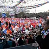 "Referandumda CHP, MHP, BDP 'hayır' dedi. Yüzde 58'le millet referandumda 'evet' dedi. İş orada çözüldü, işte siz sahip çıktınız, 'böyle olacak' dediniz böyle oldu, çünkü AK Parti'nin rotasını millet çizdi, millet. Şimdi birisi bakıyorsun 'ben Kürtlerin', birisi çıkıyor 'ben Türklerin partisiyim.' Birisi çıkıyor CHP, 'ben de kumsalların partisiyim.' Biz ne diyoruz? Biz 77 milyonun, biz 780 bin kilometrekarenin partisiyiz. Onun için Türküyle, Kürdüyle, Zazasıyla, Arabıyla, Lazıyla, Çerkeziyle, Romanıyla velhasıl biz, hepinizi Yaradandan ötürü seviyoruz. 'Tek millet', 'tek bayrak', diyoruz. Bayrakları bayrak yapan üstündeki kandır, toprak eğer uğrunda ölen varsa vatandır. Bayrağımız rengi şehidimiz kanı, hilal bağımsızlığımızın ifadesi, yıldız şehitlerimizin simgesi. Bayrağımızdan başka bayrak asla tanımıyoruz."