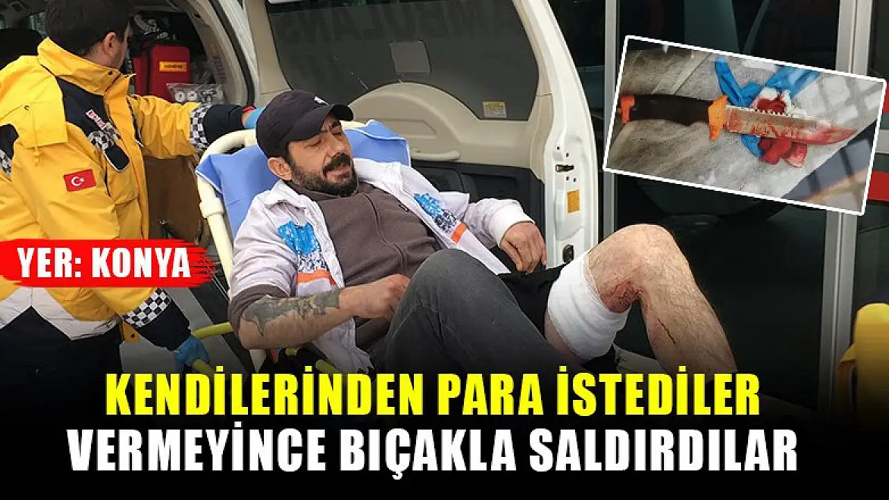 KONYA'da Mehmet Coşkun (29) ve Mehmet Ali Koç (37) kendilerinden para istediği öne sürülen 2 kişinin 'rambo' bıçaklı saldırısında yaralandı.