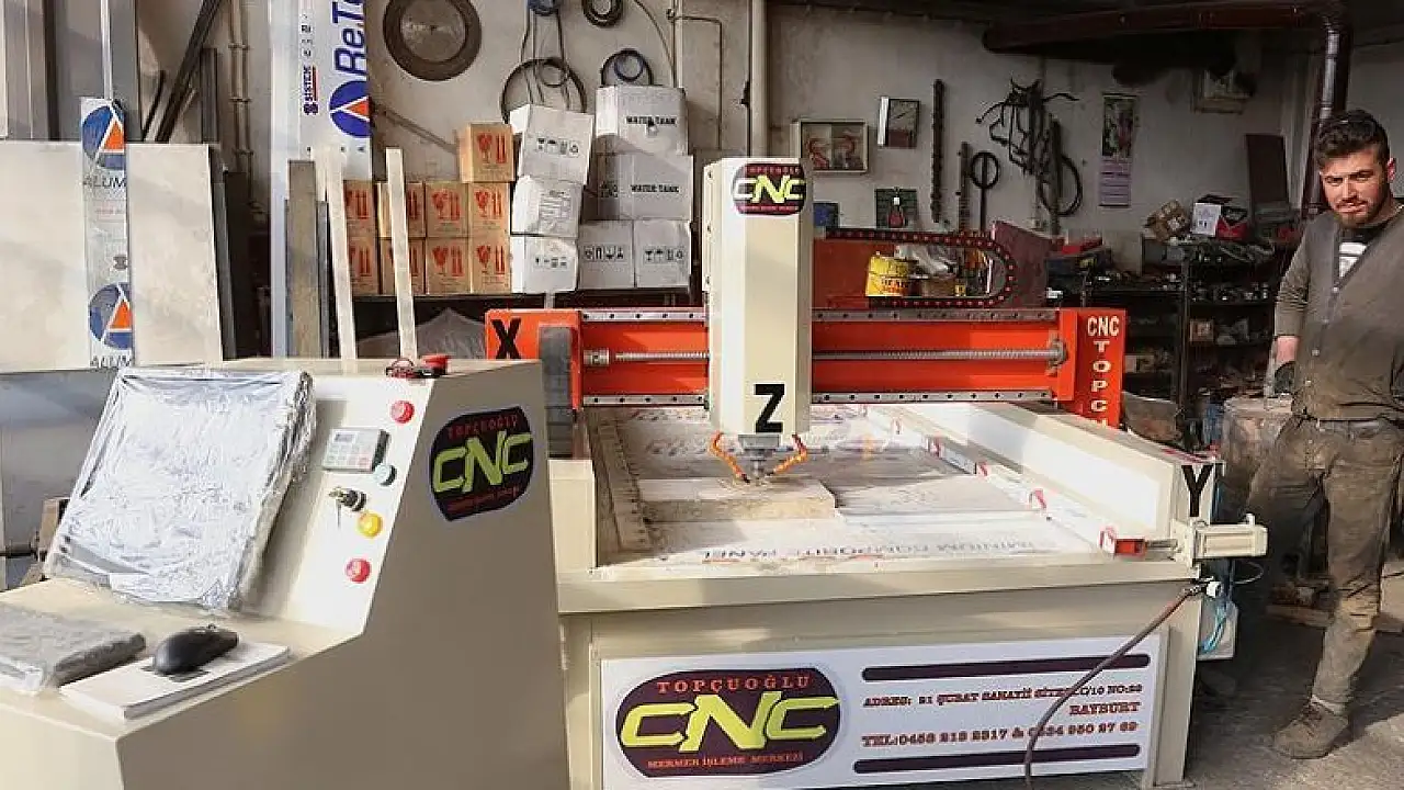 Bayburt'ta tarım makinaları üretimi yapan bir işletme sahibinin, ihtiyaç duyduğu, ancak pahalı bulduğu için üretimini kendisinin yaptığı CNC olarak bilinen "Bilgisayarlı Nümerik Kontrol" tezgahına hem yurt içinden hem de yurt dışından yoğun talep geliyor.