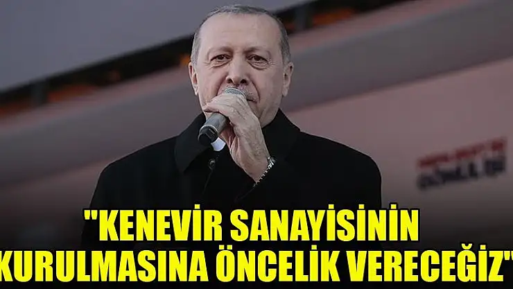 Cumhurbaşkanı Erdoğan, 'Kenevir tarımını ve üretimini artırırken aynı şekilde sanayisinin de kurulmasına öncelik vereceğiz.' dedi.