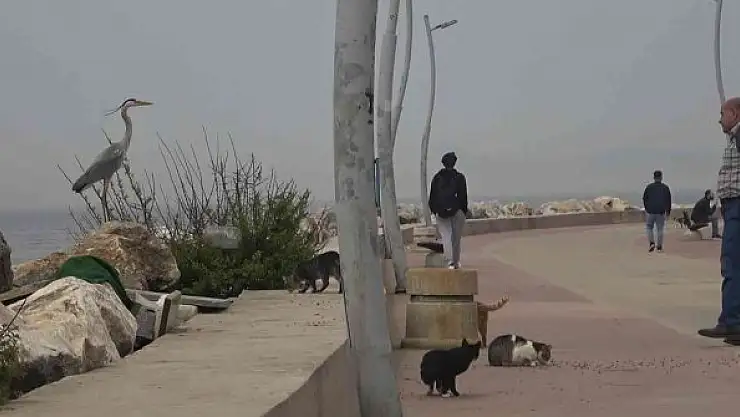 Kent merkezinde gri balıkçıl şaşkınlığı