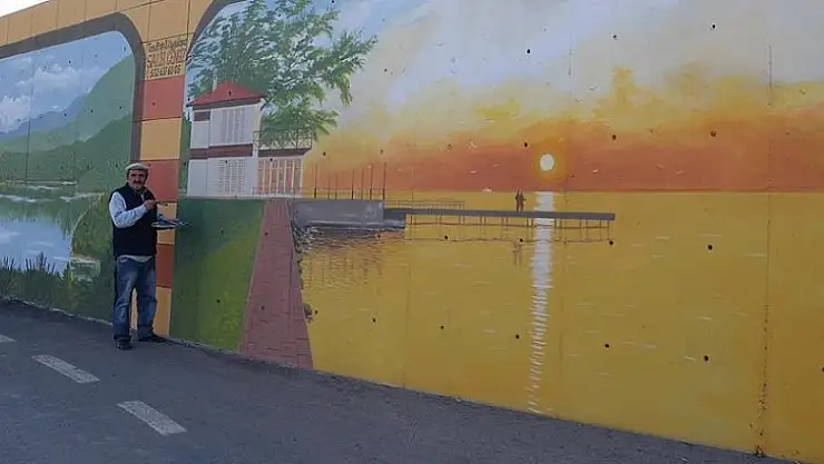 "Ben de 3 farklı tasarım sundum. İki boyutlu bir çalışma yapmak istedim. Yalova'nın tarihi ve doğal güzelliğe sahip 34 mekanını sembolize eden kenti tanıtan resimleri buraya aktardım. Bir de özellikle üzerinde durduğum Atatürk’ün dünyaya çevrecilik dersi verdiği bir ağacın dalını kesmemek için yürüttüğü Yürüyen Köşk’ten iki tane yaptım bu duvara. Bunu özellikle zevkle çalıştım. 234 metre uzunluğunda yaklaşık 900 metrekare alana 60 günde yoğun bir çalışmayla resimleri aktardım. Araştırmalarıma göre kayıtlara giren bu uzunlukta, bu büyüklükte bir resim yok. Sanat hayatımdaki en önemli işlerden biridir."
