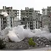 Etrafı brandalarla çevrilen 4 blokun yıkımı yaklaşık 5 saniyede tamamlandı.